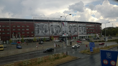 Taking my spot to the left of the goal I see that the hardcore fans are at he other end and the tiny bit of segregation is to the right of me where the away fans are going to be. But I doubt ther'll be many on show today as Slavia are playing Karviná, and you'd have to have a Geography degree like Mr X or you wouldn't know that it's right on the eastern borders. Or as I like to call it "smack in in the middle of Czechoslovakia". Plus it's a three hour train ride away, so a bit like Hartlepool coming to us.
